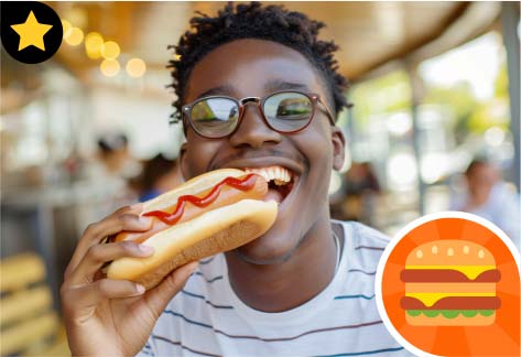 A cozinha brasileira à la carte de menu variado, em ambiente climatizado e descontraído com pátio coberto.