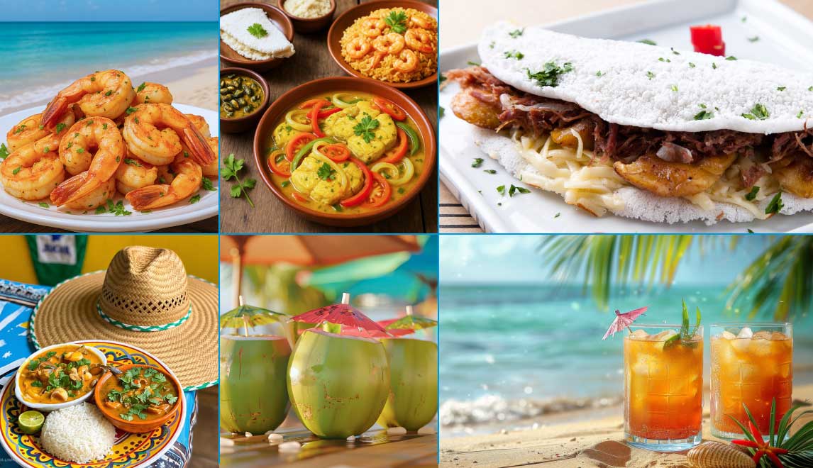 Saboreie a culinária local, com destaque para frutos do mar, tapioca, cuscuz e doces típicos.